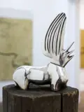Adrian Ilfoveanu (b. 1971, Pitesti) is known for his sculptures in various media - wood, marble, bronze or synthetic resins, depicting anthropomorphic or zoomorphic subjects and figures essentialized. A graduate of the National University of Arts in Bucharest, in 2003 he won the National Project Competition for the re-design of the plinth of the former Lenin's statue "Monument to the Freedom of the Word", and since 2007 he has been creating the trophy for the GOPO Awards, the most notable awards of the Romanian film industry. His work has been exhibited in the USA, Norway, the United Arab Emirates, Italy, Germany, Denmark, India, Finland and Germany.