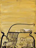 Sorin Ilfoveanu (b. 1946, Campulung-Muscel) is one of Romania's most important contemporary artists. He graduated in 1970 from the class of Corneliu Baba and went on to become, in turn, head of the Department of Painting, Dean of the Faculty of Fine Arts and Rector of the National University of Arts in Bucharest. His creation, in drawing and painting, is recognizable by the intensely personal style that explores existential themes, symbolically-cripted in his already iconic characters, with Byzantine visual sources and a subtle primitive stylistic horizon. His most notable international exhibitions include the Venice Biennale in 1987, along with presentations in Norway, Holland, France, Austria, Italy, Germany, Greece, Chile, Chile, South Korea and Japan. His work can be found in major museums and private collections around the world, from Paris to Tokyo, from Bucharest to Oslo and Perugia.